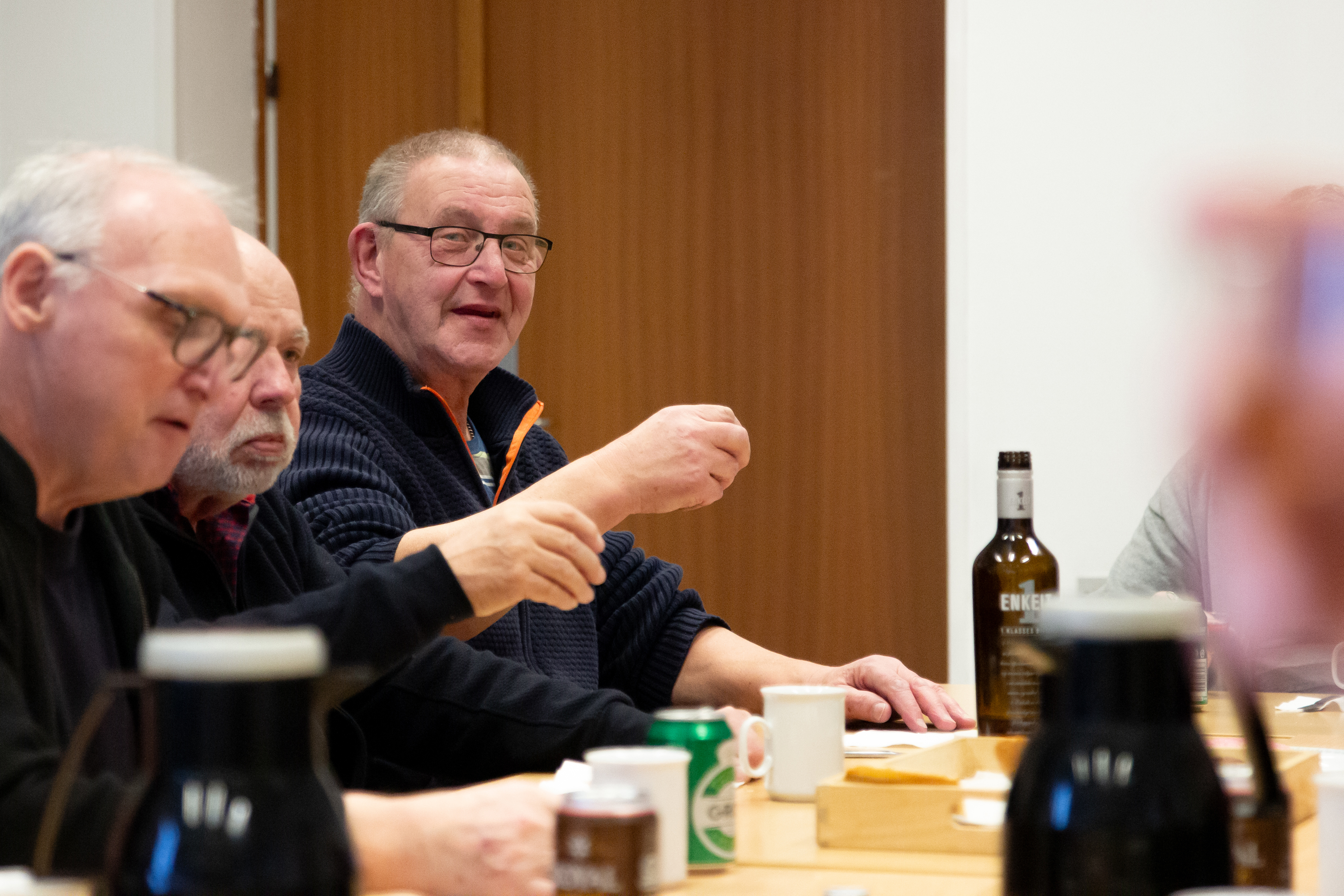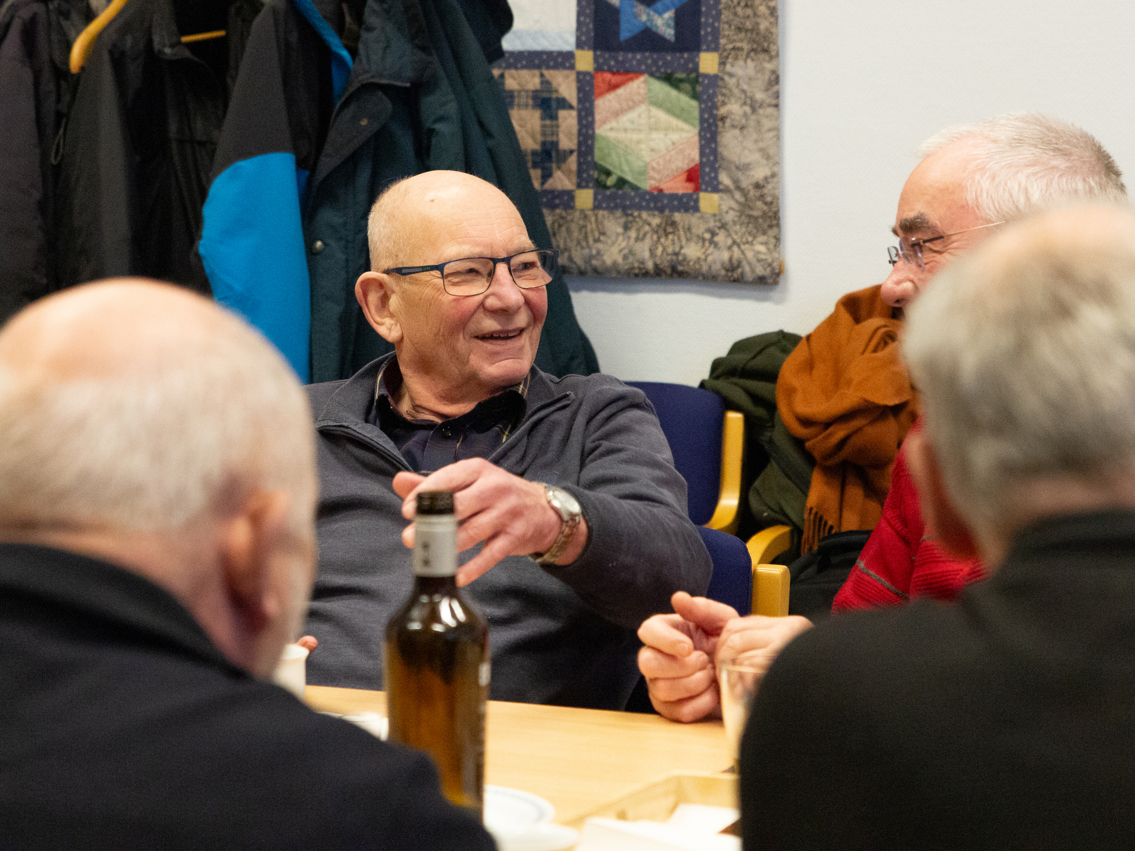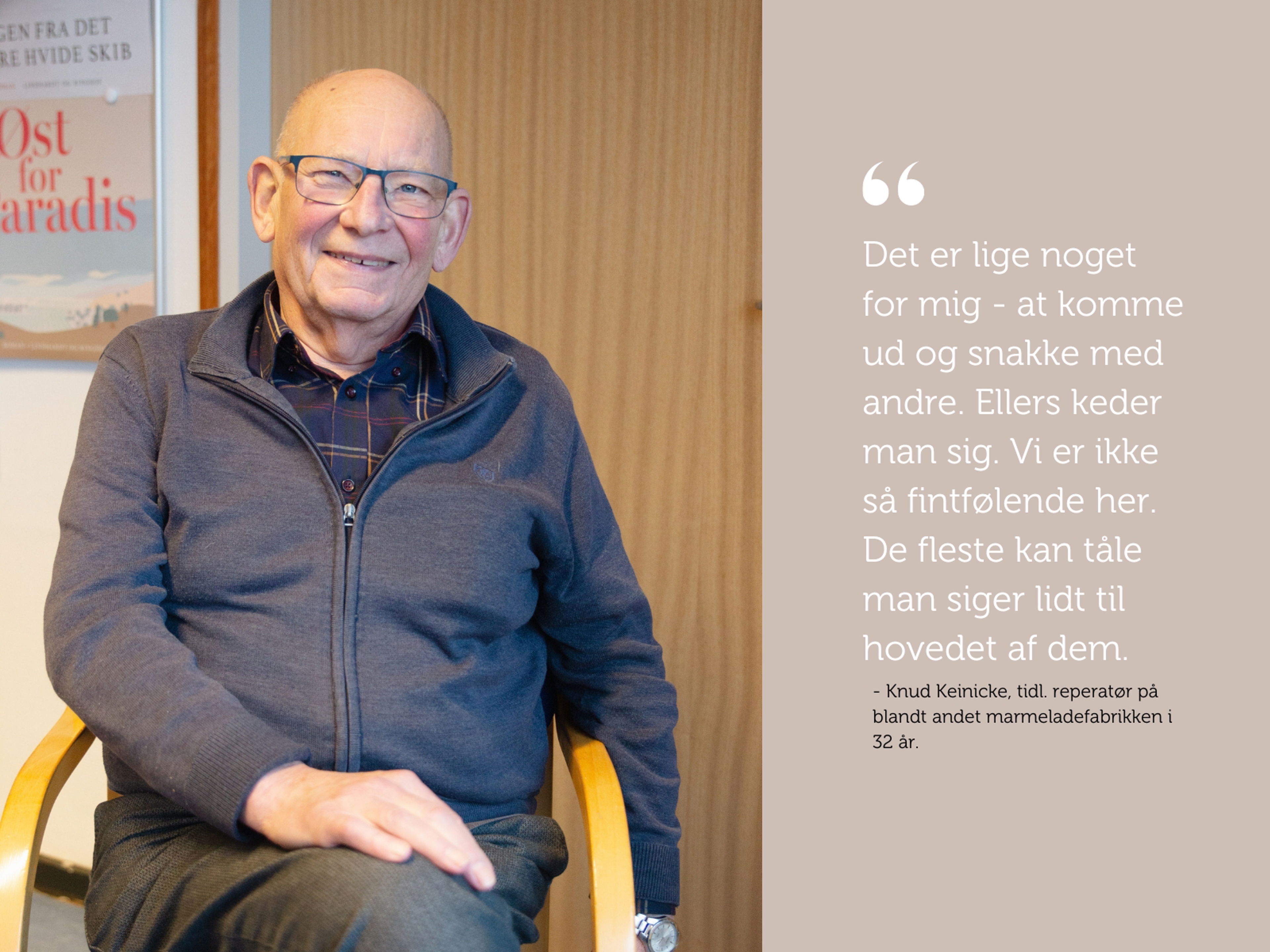 "Det er hyggeligt. Det er det altså. Vi har et sammenhold. Nogle er tidligere kollegaer, mens andre er nye bekendtskaber. Og som tiden går, ses flere jo også ved siden af. Tager på ferie eller mødes i værkstedet i motorcykelklubben for eksempel. "