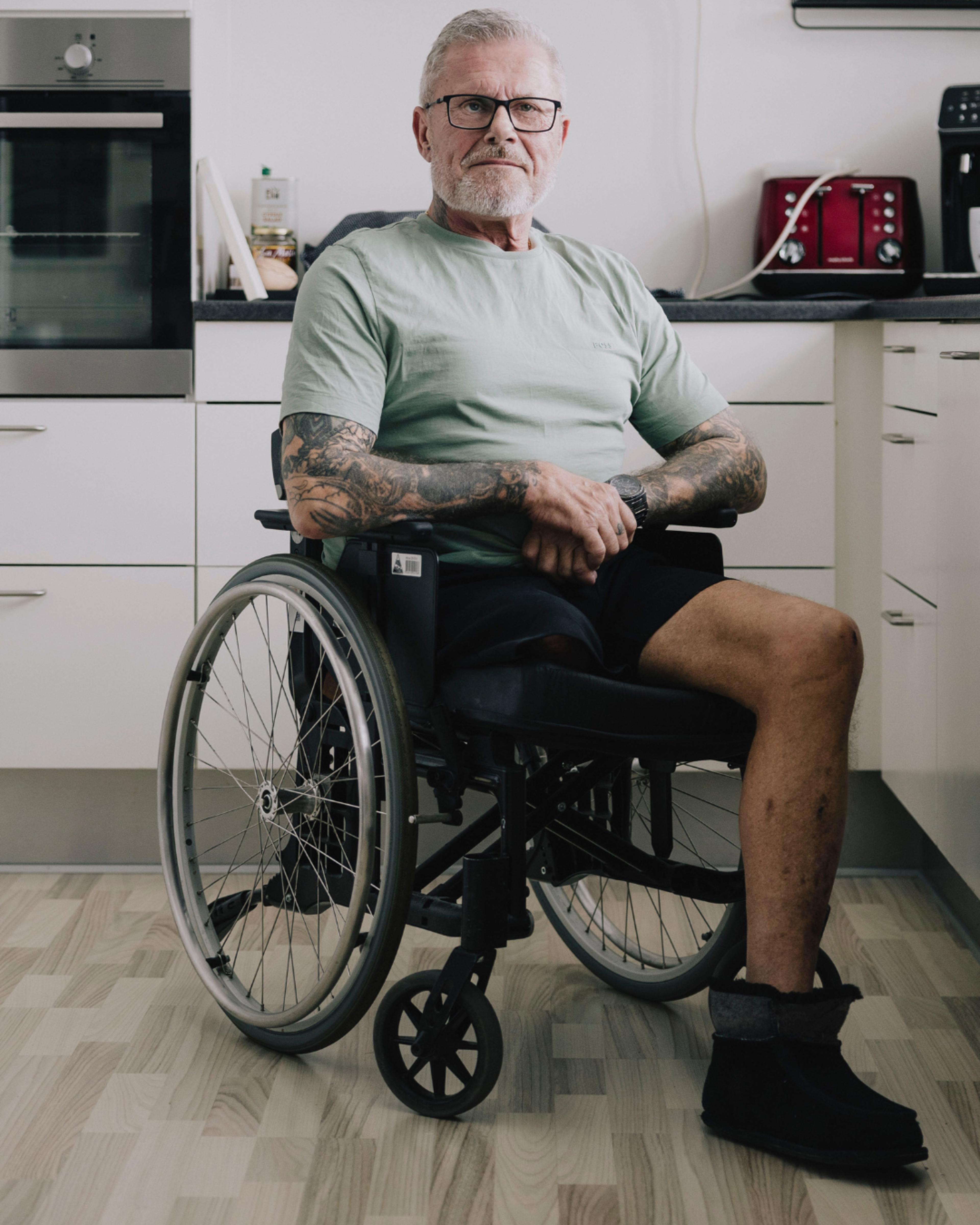 Jeg fik et valg: Vil du ende med et stift ben, eller skal vi amputere? Jeg valgte det sidste og har nu en stump tilbage af mit ben på cirka 20 centimeter over knæet.